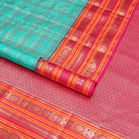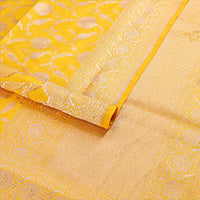 Yellow checked & chakram buttas Kanchipuram silk saree, contrast korvai border of salangai,muthu,vanki & vanasingaram designs & jaal pallu Yellow checked & chakram buttas Kanchipuram silk saree, contrast korvai border of salangai,muthu,vanki & vanasingaram designs & jaal pallu