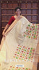White floral buttas kancheepuram silk saree with contrast ganga jamuna, korvai border of thilakam mokku, poo chakram, mayil design & zari design pallu White floral buttas kancheepuram silk saree with contrast ganga jamuna, korvai border of thilakam mokku, poo chakram, mayil design & zari design pallu