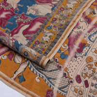 White natural scenery painting style printed linen cotton saree with contrast bavanji border, scenery printed pallu, and printed blouse White natural scenery painting style printed linen cotton saree with contrast bavanji border, scenery printed pallu, and printed blouse