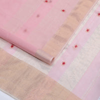 Pink dotted striped with bird buttas Coimbatore cotton saree, contrast plain border, and pallu of bird motifs Pink dotted striped with bird buttas Coimbatore cotton saree, contrast plain border, and pallu of bird motifs