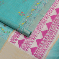 Borderless blue ombre style tri-colored plain Khadi mul cotton saree with full plain blouse