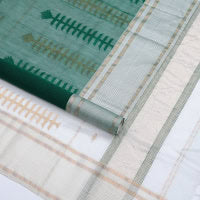 Borderless green jaal patterned gird buttas Coimbatore cotton saree, self-pallu of jaal and leaf motifs Borderless green jaal patterned gird buttas Coimbatore cotton saree, self-pallu of jaal and leaf motifs