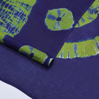 Green batik circle motifs printed mul mul cotton saree, contrast traditional thread border, and batik printed pallu Green batik circle motifs printed mul mul cotton saree, contrast traditional thread border, and batik printed pallu