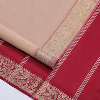 Cream-pink plain design mul mul cotton saree, contrast copper zari horizontally striped border, plain pallu, and plain blouse Cream-pink plain design mul mul cotton saree, contrast copper zari horizontally striped border, plain pallu, and plain blouse
