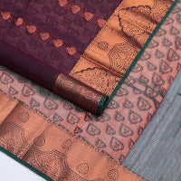 Grey unique buttas Coimbatore cotton saree, contrast unique buttas border, and pallu of geometric patterns Grey unique buttas Coimbatore cotton saree, contrast unique buttas border, and pallu of geometric patterns