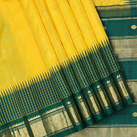 Yellow checked design, and zari buttas Kanchipuram silk saree, contrast zari butta border, and floral dsign pallu Yellow checked design, and zari buttas Kanchipuram silk saree, contrast zari butta border, and floral dsign pallu