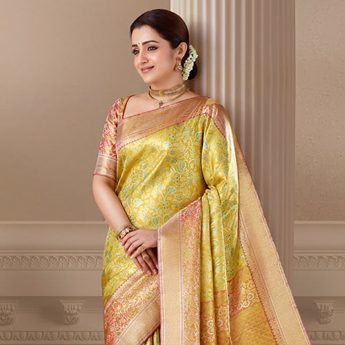 Our showrooms house the largest collection of silk sarees in Tamil Nadu. At Pothys you get the benefit of diverse silk varieties, exclusive designs and authentic silk brands. Yes, Pothys is the first Textile showroom in Tamil Nadu to launch its own unique brand of silk sarees namely Samudrika, Parampara and Vastrakala. These silk brands stand apart for their richness in silk, exclusivity in design and luxury, genuine zari work and weaving artistry for that special look and feel.