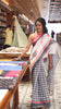 Black bandhani motifs printed linen cotton saree, tri-color dye print and piping zari border, printed pallu, and a matching blouse