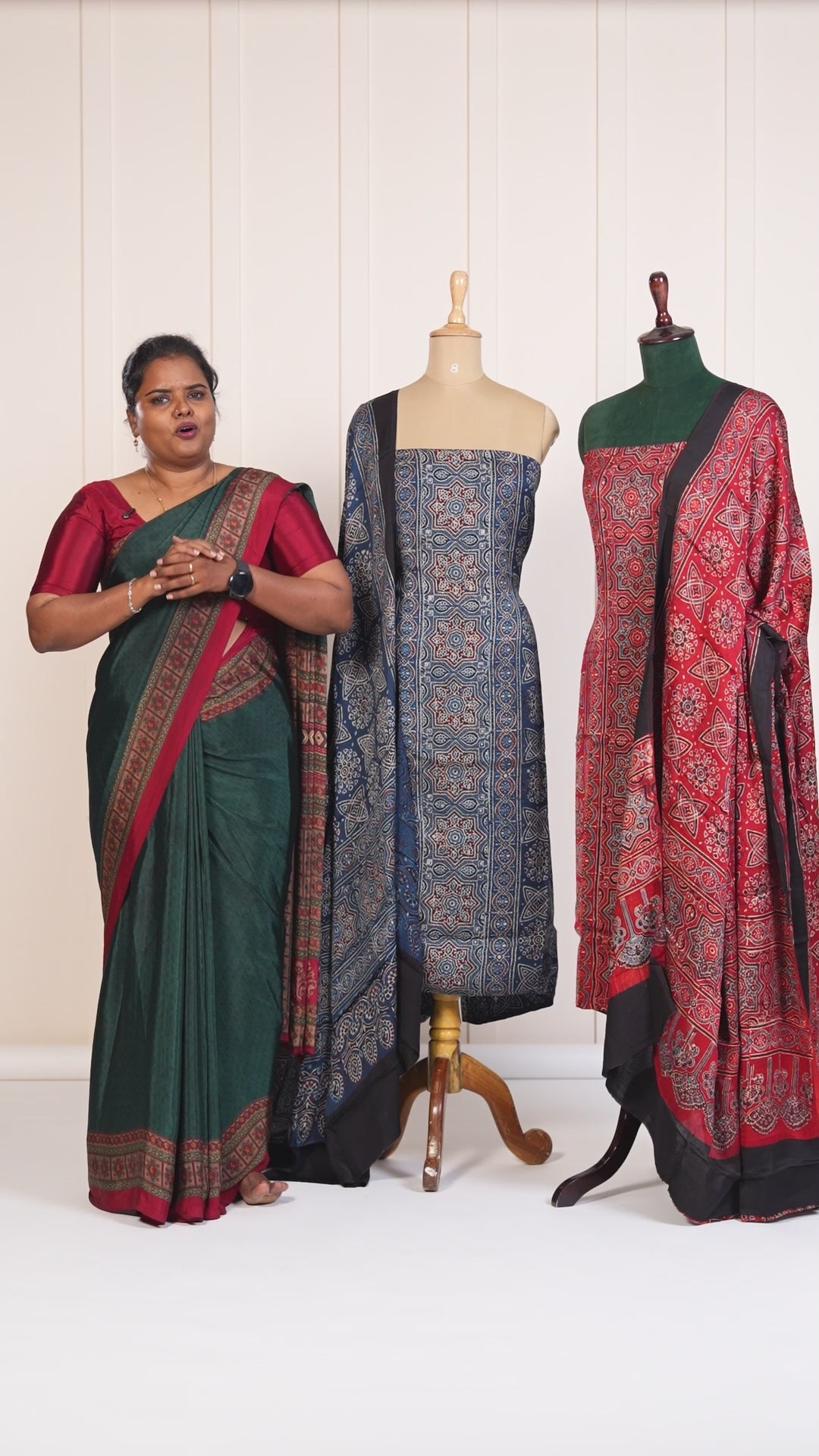 Black chudidhar material set pure modal hand block ajrack print top with plain pant & hand block print dupatta