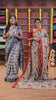 Black kalamkari-style pichwai printed Mangalagiri cotton saree with contrast traditional zari border, kalamkari printed pallu, and a floral vine printed blouse