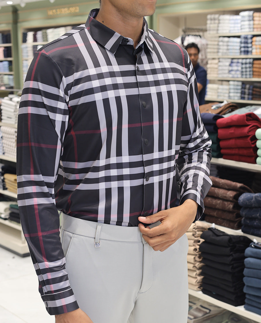 Black Poly Lycra Blended Stitchless Casual Shirt, Elevated with Burberry Checks, Featuring a Spread Collar, Full-Sleeves, Slim Fit, and Regular Length Casual Shirts