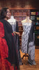 Black & white chudidhar material set, vertical floral printed Italian crepe top, plain crepe bottom & printed georgette dupatta