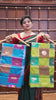 Borderless green chakra buttas enclosed, checked elite soft silk saree, contrast ogee patterned pallu, and contrast zari design blouse