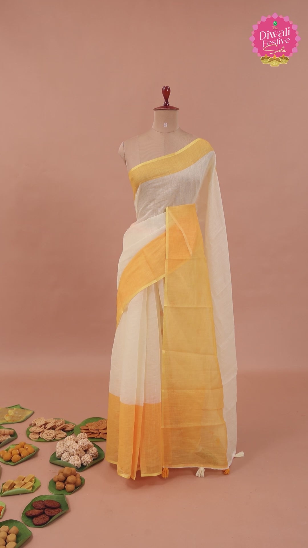 Borderless Navy blue vertical multi-color thread striped khadi jute linen saree, striped pallu & matching plain blouse