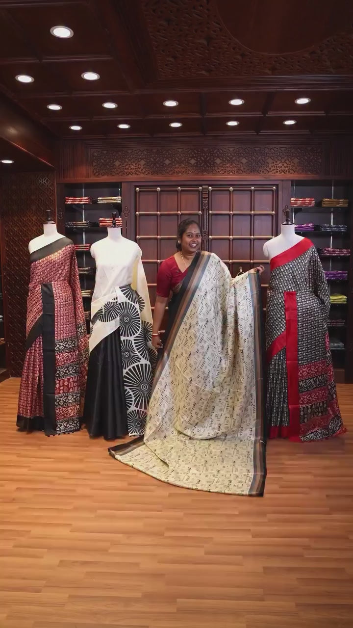 Borderless White with red sunbrust design skirt pattern khadi cotton saree & big sunbrust printed pallu with tussels