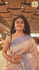 Chikku and Grey Plain Semi-Tussar Saree Accentuated with a Contrast Temple Kalamkari Floral-Printed Border, Featuring a Pallu Adorned with Kalamkari Peacock Print, Paired with a Printed Blouse