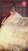 Cream gold zari thilakam motifs woven Tissue chanderi saree, gold zari bavanji border, plain pallu & brocade blouse