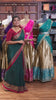 Gold banaras half saree, ogee skirt, contrast violet traditional zari border, matching blouse, and Syska georgette embroidered dhavani