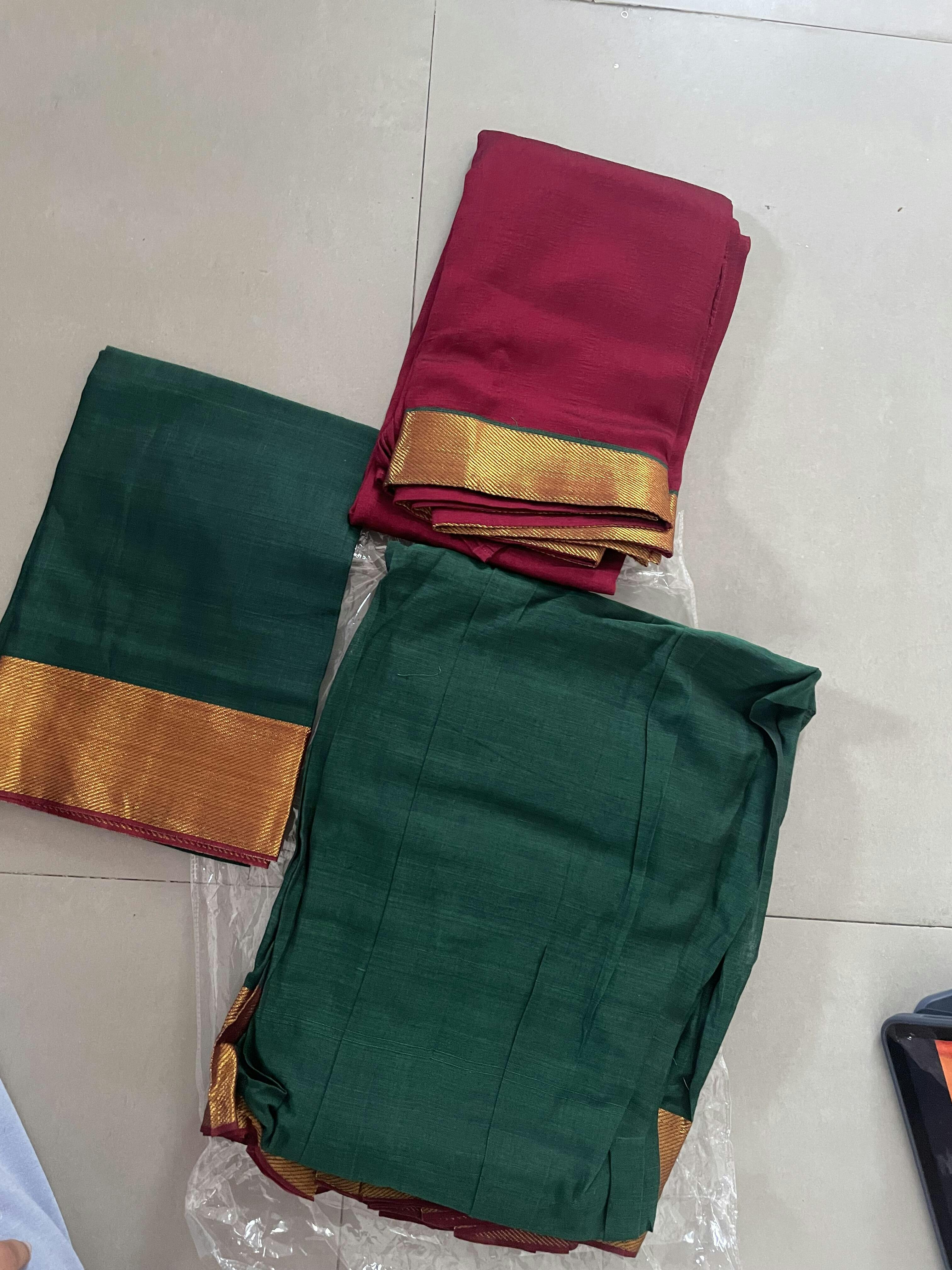 Green mercerised cotton daman zari border half saree with cotton blouse & skya georgette one side zari border dhavani