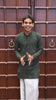 Green round peacock chakram buttas enclosed checked Mulberry silk saree, contrast round peacock chakra border, zari worven pallu, and contrast zari blouse