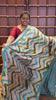 Green zig-zag shibori printed Maheshwari silk saree,contrast peacock zari border, nature-theme scenery print pallu & butta print blouse