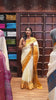 Half-white zari designs dola silk saree, contrast blue temple traditional border of peacock and elephant motifs, and temple pallu