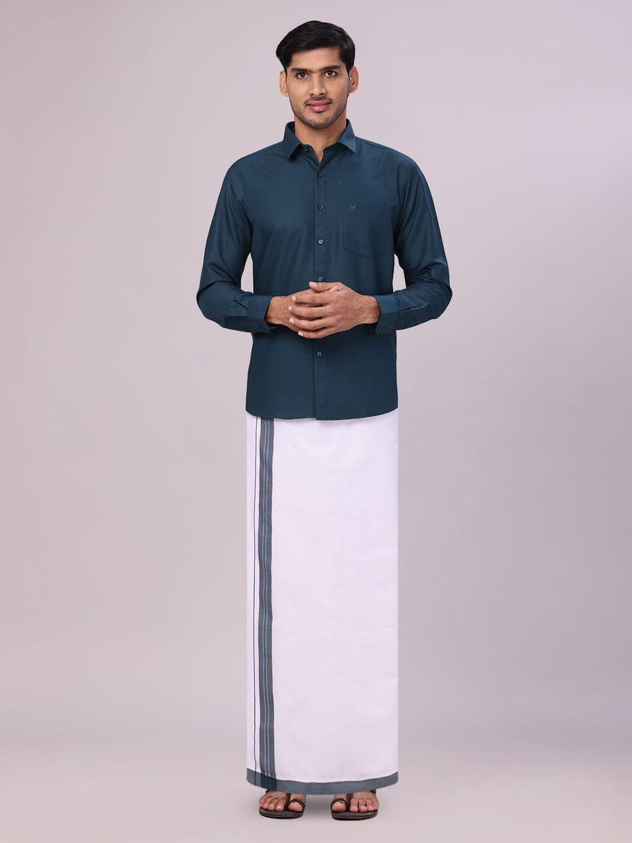 Introducing our Men's Color Shirt with Matching Border Dhoti Combo a perfect blend of style and comfort for your traditional and contemporary wardrobe needs. Elevate your fashion game with this versatile ensemble that effortlessly combines modern trends with timeless elegance.