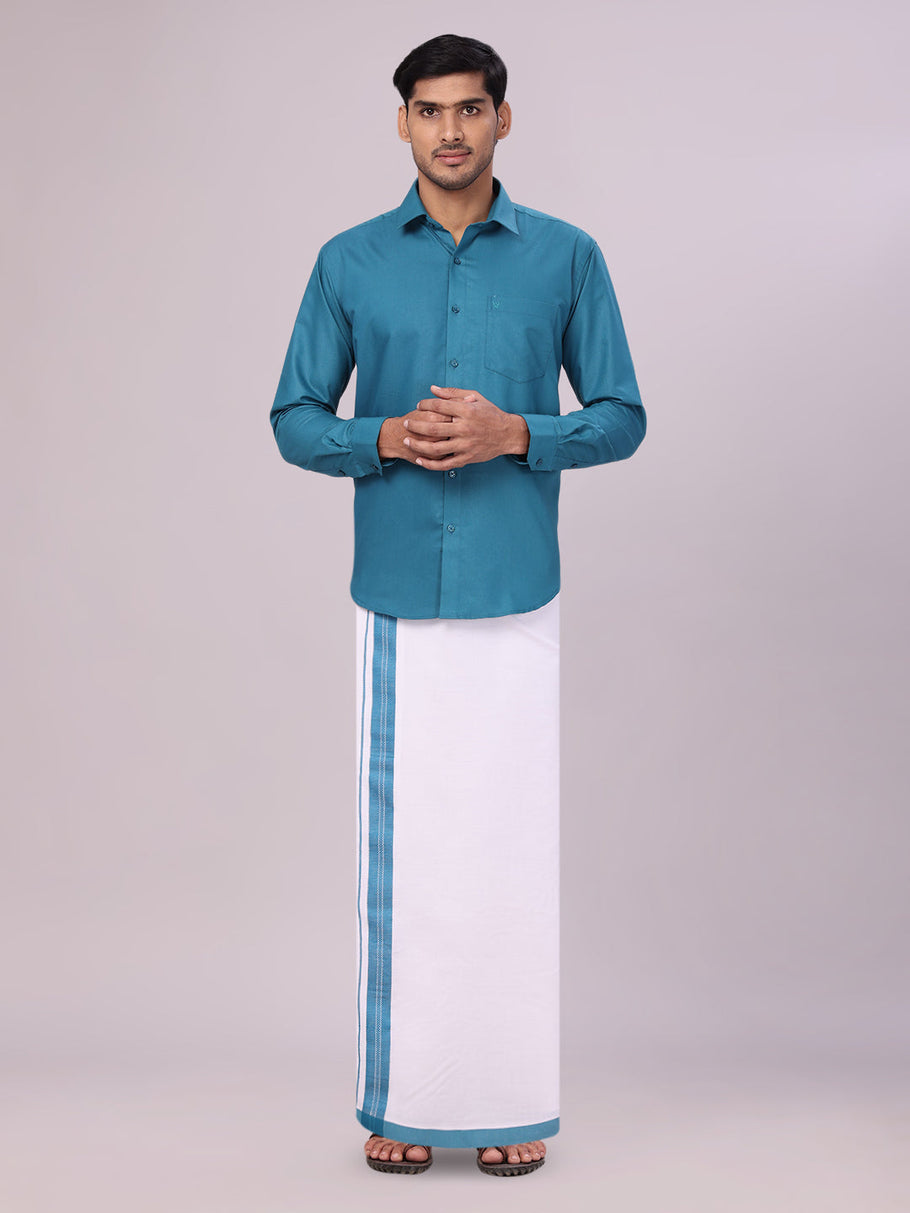 Introducing our Men's Color Shirt with Matching Border Dhoti Combo a perfect blend of style and comfort for your traditional and contemporary wardrobe needs. Elevate your fashion game with this versatile ensemble that effortlessly combines modern trends with timeless elegance.