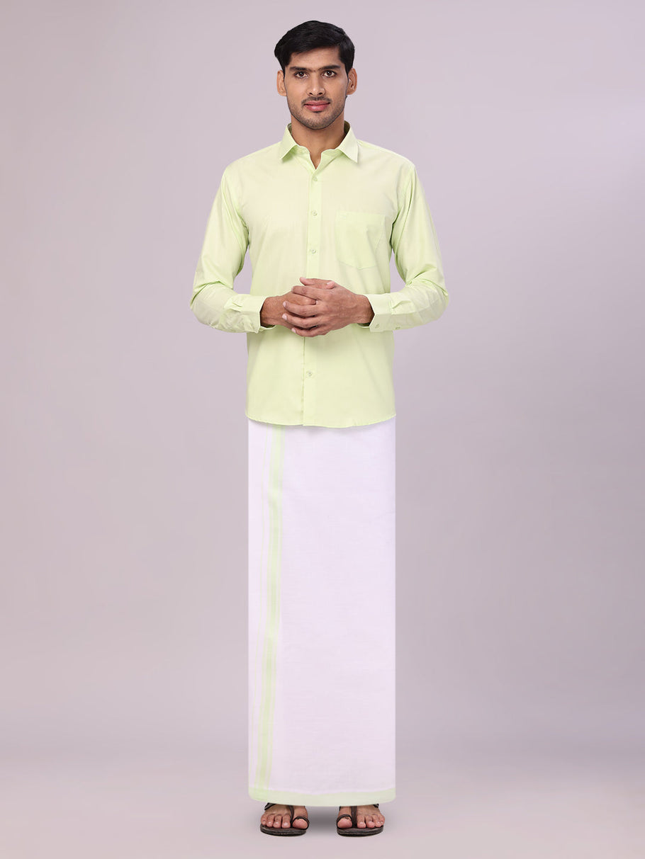 Mens Cotton Light Green Matching Shirt and Dhoti Combo Luster