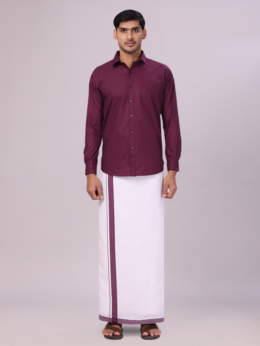 Mens Dark Wine Color Shirt with Matching Border Dhoti Combo Casper