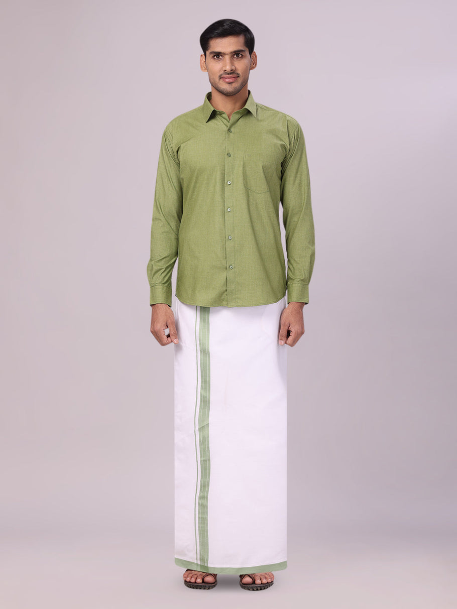 Mens Light Green Color Shirt with Matching Border Dhoti Combo Casper