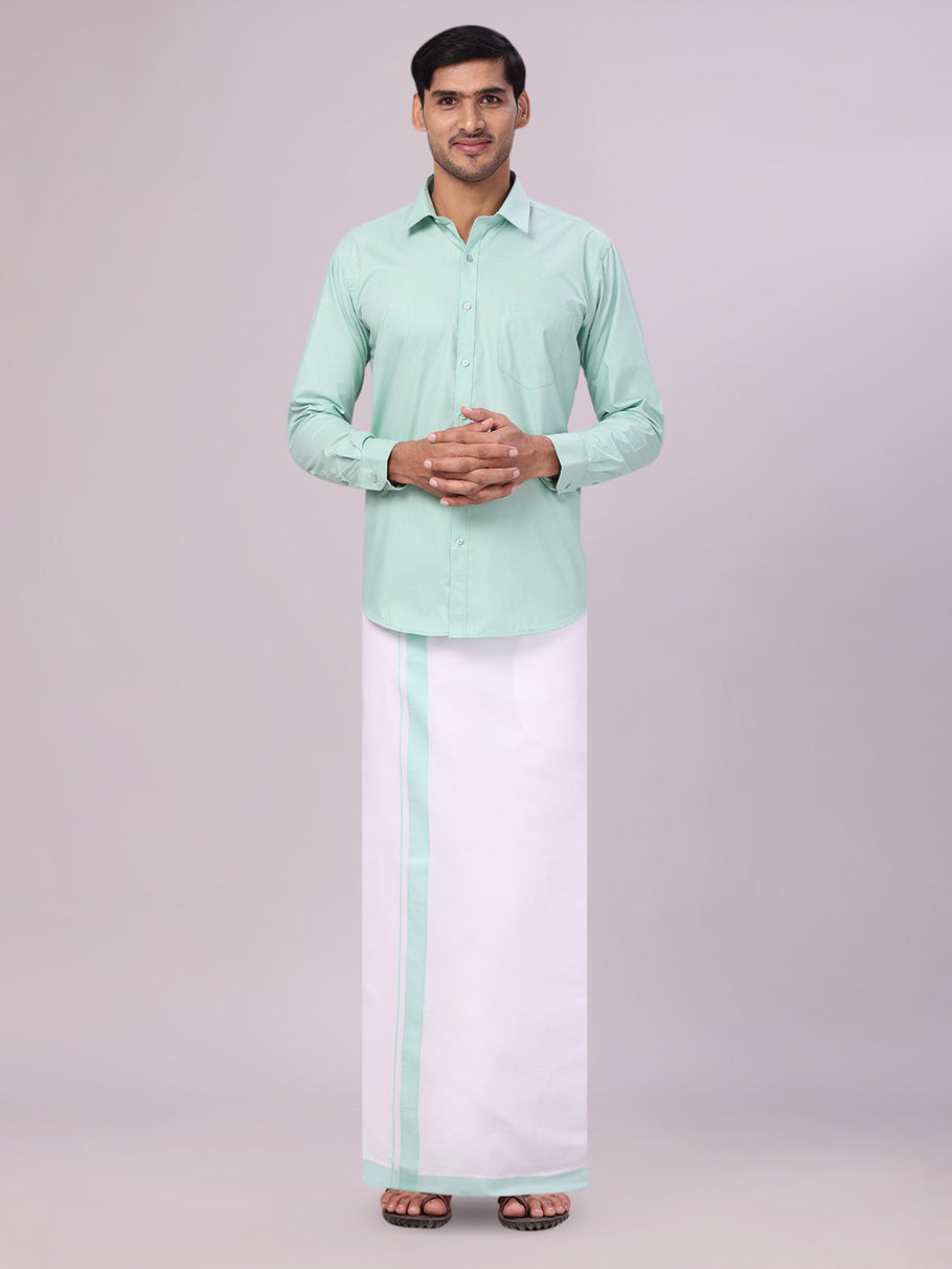 Mens Sea Green Color Shirt with Matching Border Dhoti Combo Casper
