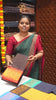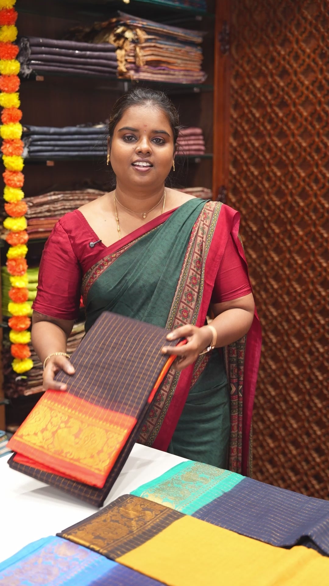 Navy blue-rama zari checked sungudi cotton saree, contrast zari border of peacock motifs, zari striped border, and a contrast blouse