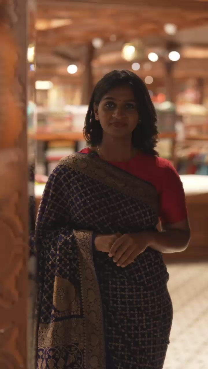 Parrot green zari buttas Kanchipuram silk saree, contrast one-sided checked border of thazampoo rekku, and kamalam designs, and zari design pallu