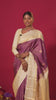 Purple zari checked and zari buttas silk saree, contrast varisai pettu border of jaal, muthu, neli, and rudraksham motifs