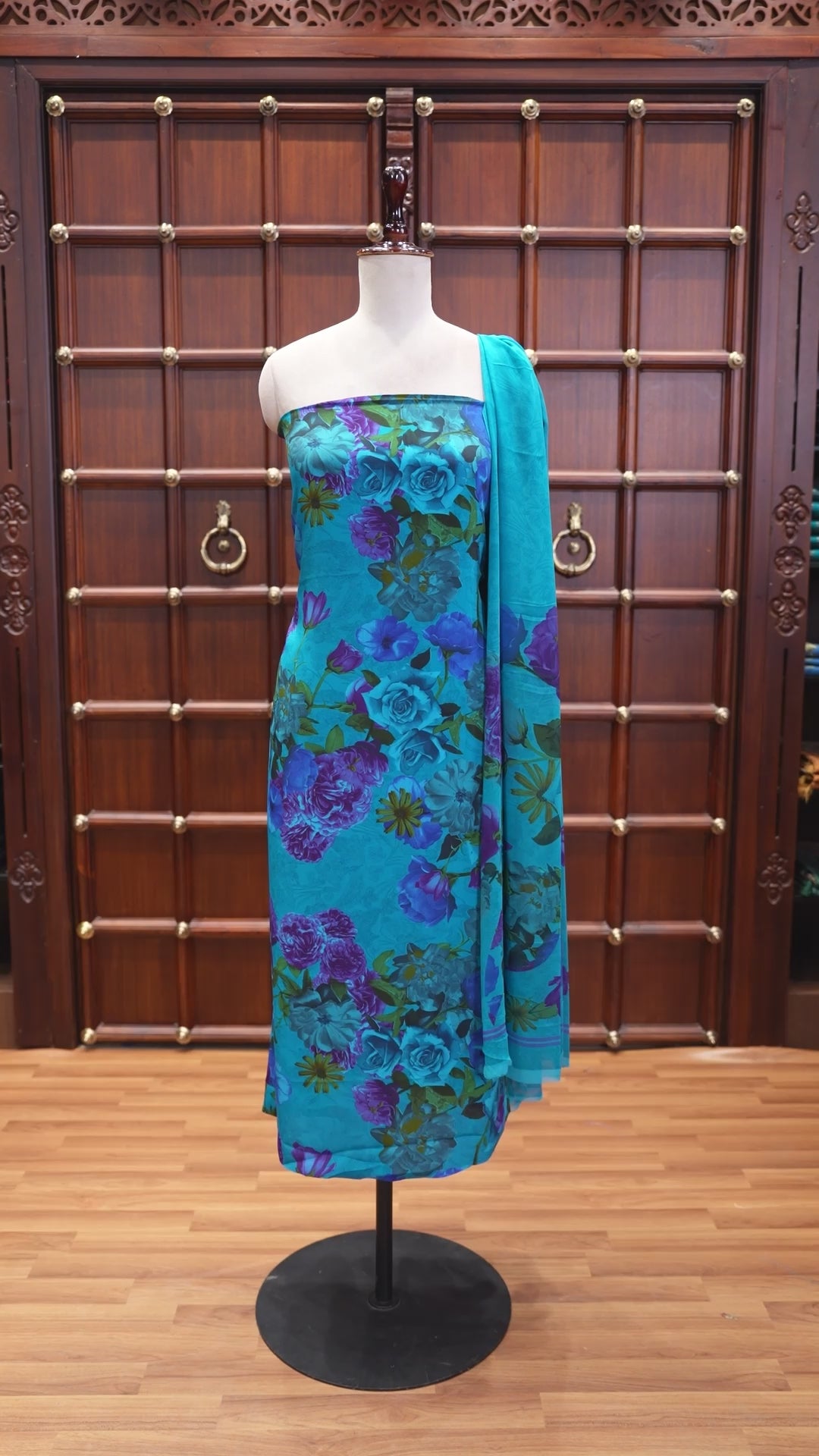 White and black material chudidar set, cheetah skin and floral-printed Italian crepe top, a plain bottom, and a georgette dupatta of cheetah skin and floral print